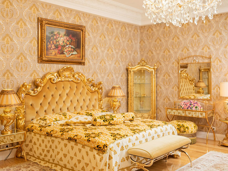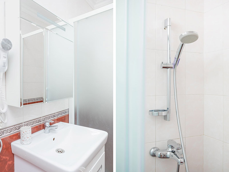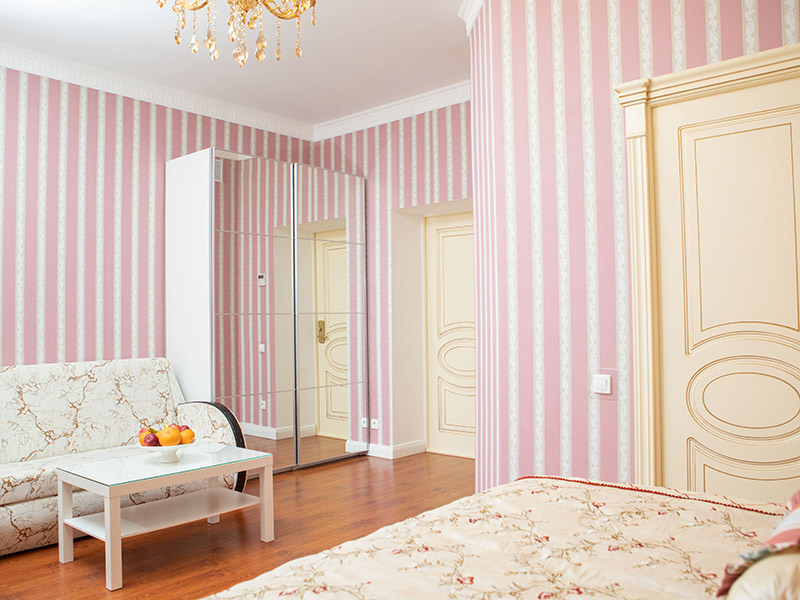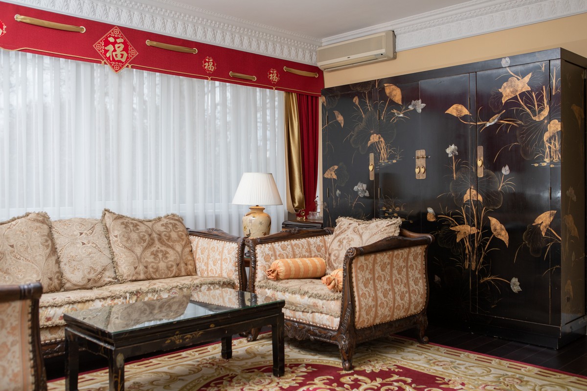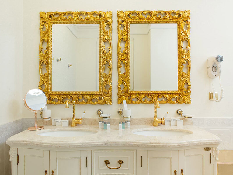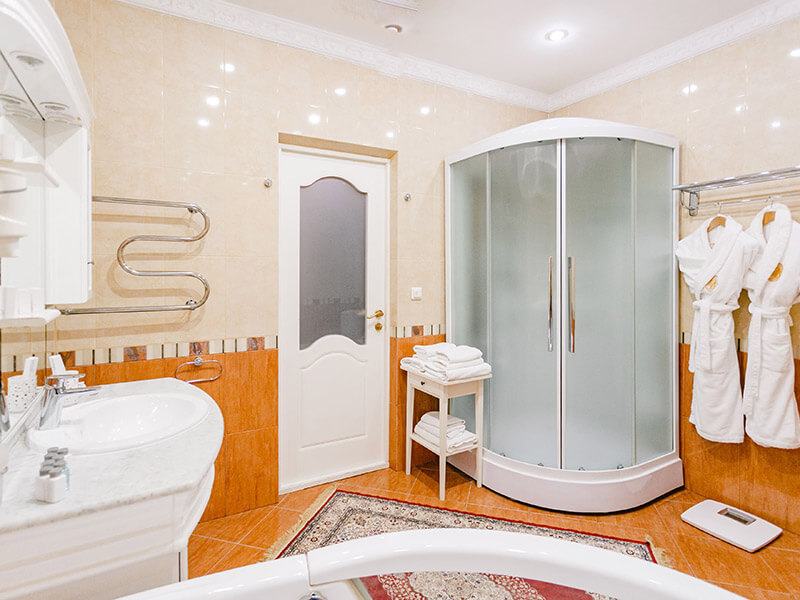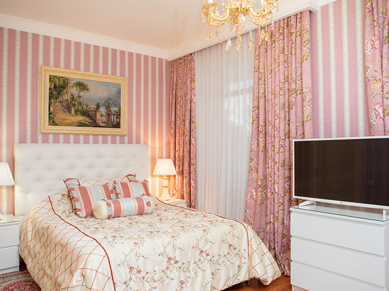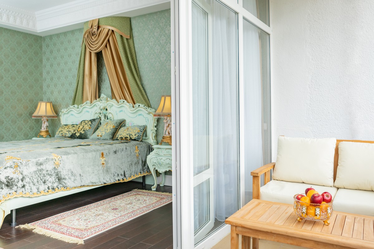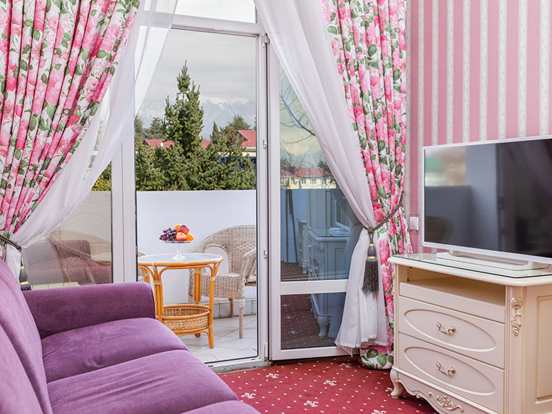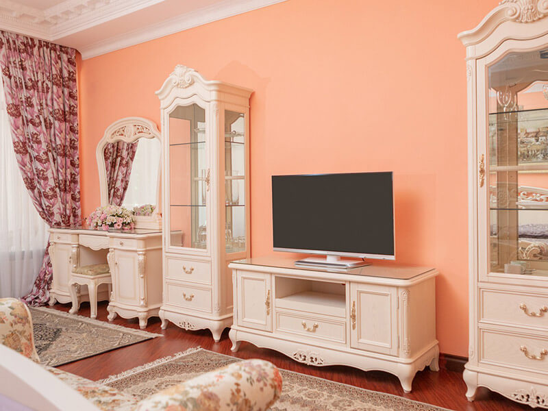 В номере: основная комната с большой кроватью, бельевым шкафом, трюмо, тумбами с бра, софой, трюмо. Есть климатическая система, плазменный телевизор и мини-холодильник. Классический дизайн поддержан красивыми световыми приборами. Ванная комната: душевая кабинка, фен и банные принадлежности.